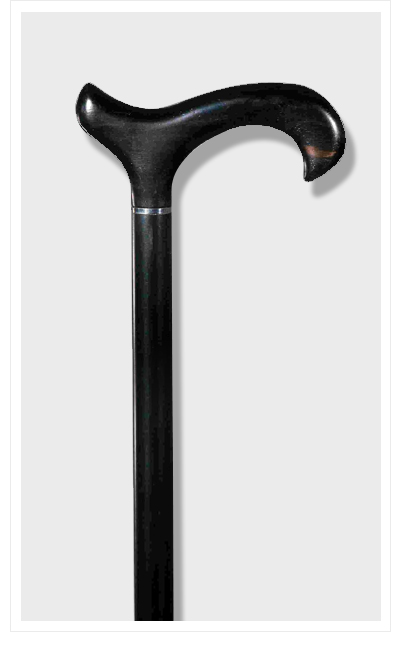 黒檀の黒で統一されたおしゃれな杖です、シェープもダービーハンドルで曲線が優しく美しく女性、男性兼用でお使いいただけます。 黒檀は天然素材で使えば使うほど黒の光沢が出現し、 磨けば磨くほどが鮮やかな黒の光沢が出ます。 黒檀の素材の特徴は木の芯まで全て黒が保たれており天然色の黒を保ちます。フォーマルな場所、ドレスに最適な逸品です